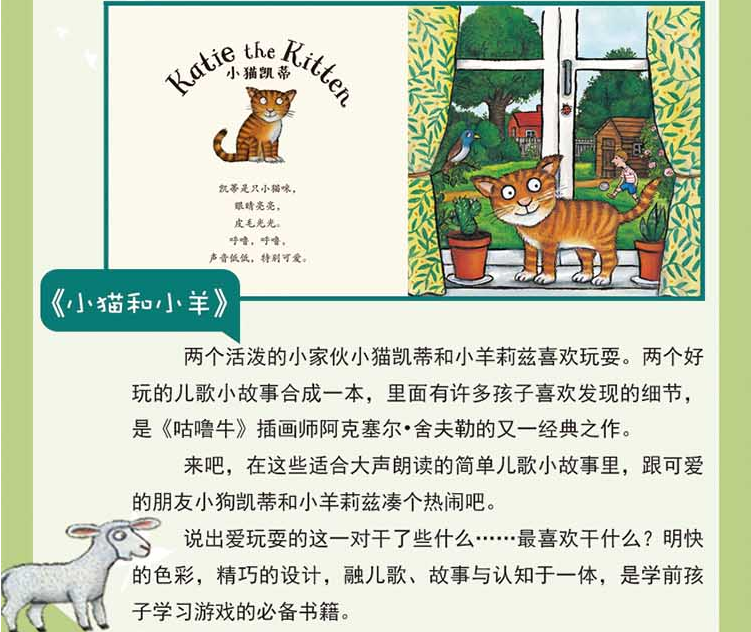 来吧,在这些适合大声朗读的简单儿歌小故事里,跟可爱的朋友小狗凯蒂和小羊莉兹凑个热闹吧。