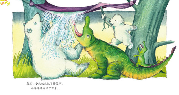 这是一个美丽的初春早晨, 小鳄鱼一大早就醒来了, 可大鳄鱼只想睡觉, 小鳄鱼只好独自去大森林里散步……
