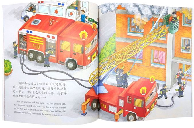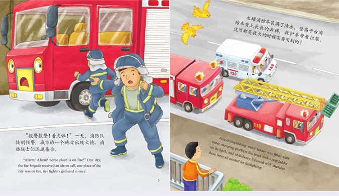 《消防车,出发(中英对照 双语有声原创绘本)/成长关键期全阅读 萌车总动员》通过对消防车的描述让小朋友们了解到消防车的用途,培养孩子的危机意识和安全意识。