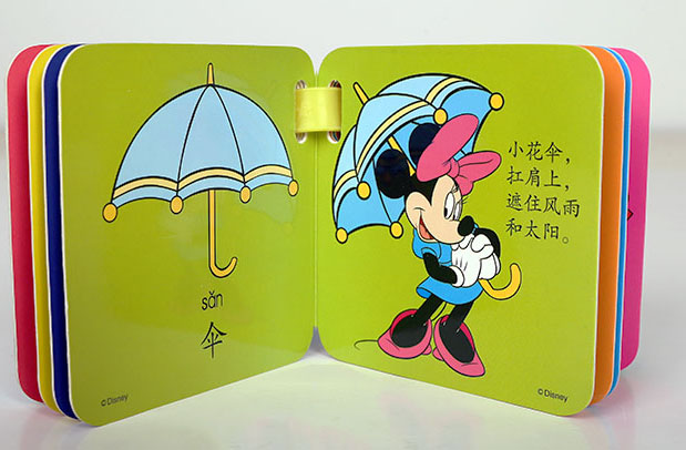 小宝宝的天性就是玩,他们对世界的认识也是从玩开始的。爸爸妈妈们要是抓住宝宝这一时期的成长特点,适时的教他们一些简单的认知,宝宝的反馈一定是非常令人惊喜的。迪士尼宝宝摇铃书是一套摇铃玩具书。宝宝在翻翻看看的同时,小手摇一摇,就像玩具一样。精装纸板可以任由宝宝小手撕扯不烂,每个纸板上都用儿歌传递着需要宝宝去认知的事物。同时,书内的小摇铃会带给宝宝更加美好的认知时光,还刺激了他们的听力发展,增强认知效果。另外,书内亲切可爱的迪士尼人物绘图也能给宝宝带去欢乐。当宝宝大一点的时候,妈妈们还可以用他教宝宝画简笔画呢!又能认知、又能玩、还可以画简笔画,这样的书真是天使稍给孩子的礼物啊!