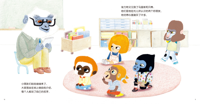 整本书营造了一种积极的氛围,能让孩子们体验到安全感,因为发掘幼儿园的有趣之处而乐于去体验幼儿园的美好时光,像小猩猩埃力特那样,建立对上幼儿园的期待。