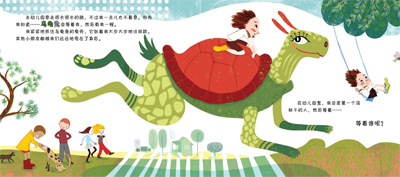 乌龟兔送你上学;鳄鱼鸭从你身边走过;苍蝇象在嗡嗡飞舞;公鸡大青蛙在尽情鸣唱……和这么多有趣的好朋友度过愉快的一天,那该是一件多么神奇的事情啊!