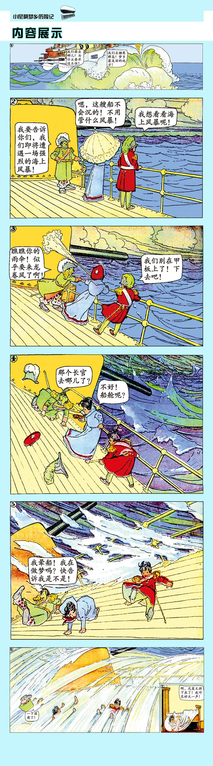 小尼莫带你走进一个奇幻王国,那里有美丽的公主,有让人又爱又恨的菲利普,有孩子们无比喜爱的圣诞老人,还有从原始丛林里来的淘气鬼……各种神奇的动植物出没于此,他们共同陪伴着你去经历。你会时而畅游在宏伟豪华的宫殿,时而奔跑在茂密幽深的原始丛林,时而又飞越太空探秘神奇的火星……这里是小朋友们的梦想之地!这一次,让我们跟随着男版“爱丽丝”小尼莫,和他一起去梦乡王国探险吧!