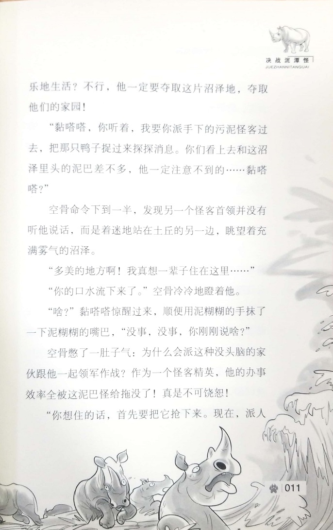 吉吉叹了口气,耷拉着尾巴游上岸,一摇一晃地回营地去了。富有正义感的他,在听说怪客入侵家园的消息时,就立刻报名加入了沼泽保卫队。虽然他不会打架,可是烧得一手好菜,香喷喷的食物最鼓舞士气了。