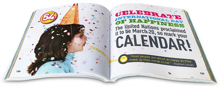 This cheerful and inspirational book will make kids go "WOW!" and "Awwww" in equal measure. Its packed with adorable animal facts, heartwarming nuggets from history, snippets of cool new science, amazing photography, inspirational advice from Nat Geo explorers, and fascainating weird-but-true facts. Sprinkled throughout are expert tips, jokes, quotes, and exercises to boost kids dose of daily joy and get them actively involved in their own well-being.