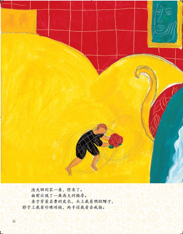 “金鱼呀,我老婆的脾气更大了。她已经不愿做贫穷渔夫的老太婆。她要做个高贵的贵妇人。这个……有点为难吧?”