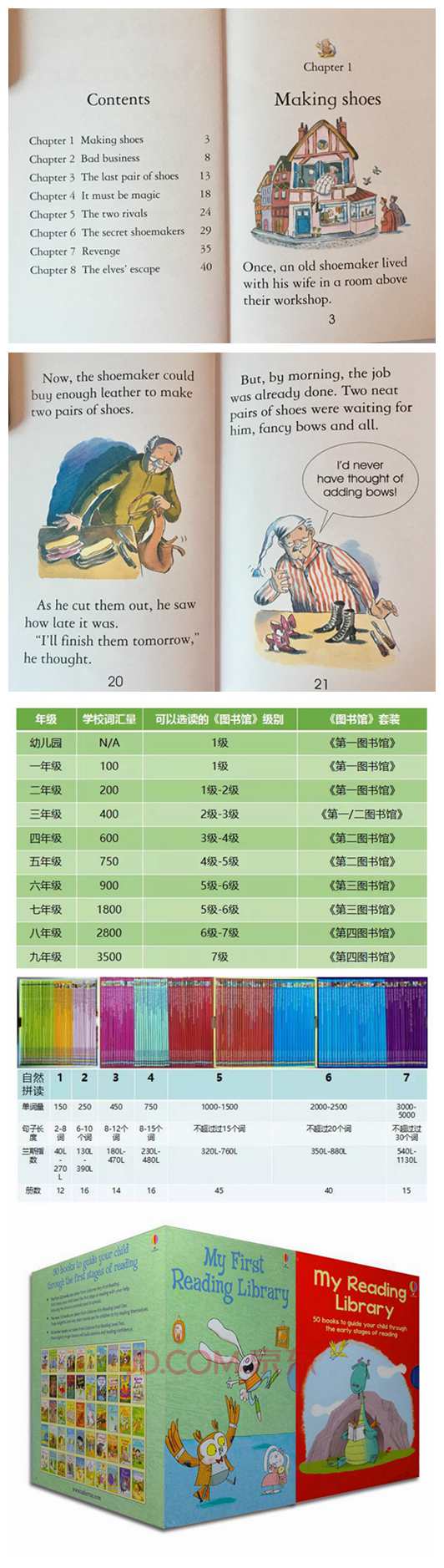 USBORNE图书馆系列到LEVEL5之后,词汇量增加到1000-1500,每页的文字数量在十行左右,共48页,涵盖了英文大部分的语态和时态。从这个级别开始,由图画书逐渐过渡到章节阅读。适合小学五六年级和初中生作为词汇量扩展读本。Level5系列均为世界知名的民间故事和童话故事,学生一般都已接触过中文版本。