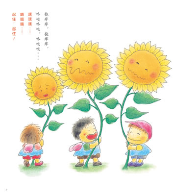 《阳光幼儿园的小朋友》共2册,包括《一起种西瓜》和《你好啊,向日葵》。其中,《一起种西瓜》讲的是:阳光幼儿园的小朋友们得到了好多西瓜种子,其中有一颗好特别好大哦。小朋友们把种子埋进土里,天天浇水,做梦都想着小西瓜快长出来。终于有一天,西瓜们冒出来了!有一个大得吓人。小朋友们很好奇,要滚一滚这个超大的西瓜。可是咔嚓!西瓜裂开了……《你好啊,向日葵》讲的是:阳光幼儿园的小朋友们要去郊游啦,去哪儿呢?当然是漂亮得望不到边的向日葵园。向日葵真高!向日葵还会笑呢!来给向日葵挠痒痒吧!哎呀,向日葵受不了啦。它们也要来逗一逗小朋友们……故事内容清新有趣,画面生动可爱,语言活泼简洁。同时具有很强的互动性,1-3岁的孩子,爸爸妈妈可通过角色扮演来讲故事,3-6岁的孩子,可尝试与小伙伴们进行绘本剧表演。让小朋友在与自然、生命的对话中,拥有健康、丰富的个性,带着无限惊喜,快乐地成长。