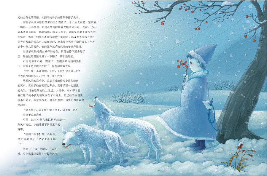 《渡过雪原》:小男孩四郎和小女孩康子渡过白茫茫的雪原,来参加狐狸小学举办的幻灯会,会上要放好几部好看的幻灯片呢……