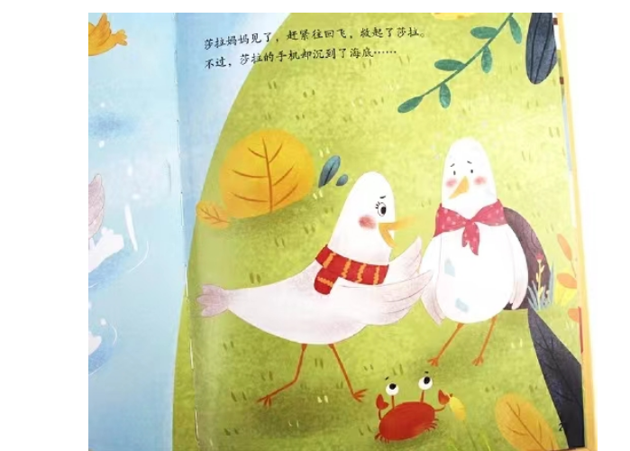 本系列丛书为专注于儿童学规矩绘本,书中塑造了惹人喜爱的动物形象——一只名叫“莎拉”的小海鸥。每个小故事中,作者通过童真的语言、充满吸引力的情节,将“从小懂规矩”的概念植入孩子的心中,引导小朋友养成良好的行为习惯。本分册从莎拉见到新玩具手机引入,讲述她沉迷于玩手机的故事。莎拉吃饭、睡觉、走路都离不开手机,为此她视力下降、撞电线杆、失去了朋友。后来,手机掉进海里,才让莎拉有机会观察身边的世界,她发现自己错过了许多美景,也明白了长期熬夜玩手机的坏处。通过制定时间表,莎拉学会了有计划地使用手机。
