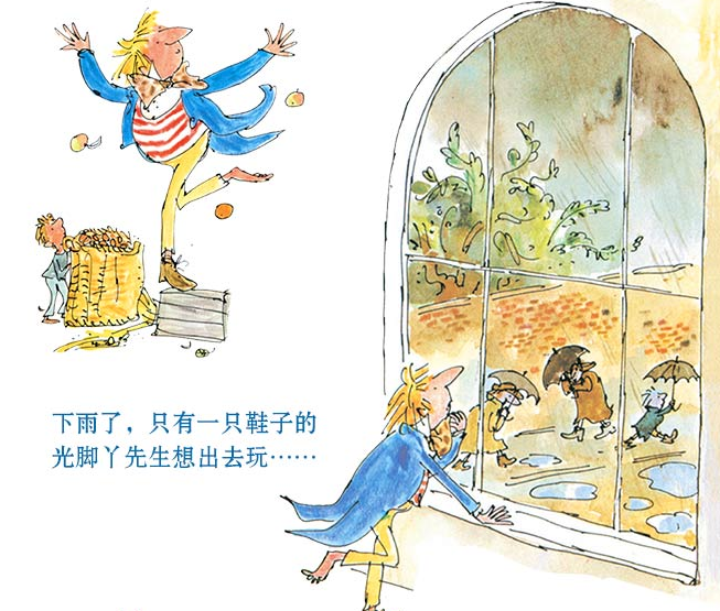 (3) 昆廷的画是吸引无数孩子进入充满快乐和想象力的阅读世界的开放性邀请。他是知名儿童文学大师罗尔德达尔御用插画师,被誉为给达尔的故事赋予生命力的杰出插画家。
