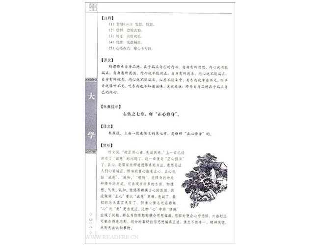 《大学》、《中庸》本是《礼记》中的二篇,今单独抽出印行,说明它们有独特的价值。《大学》原是《小戴礼记》中的一篇,传文是孔子门生曾参所作。《大学》总结了先秦儒家的伦理政治思想,系统阐发了儒家修身致道的原则及步骤。