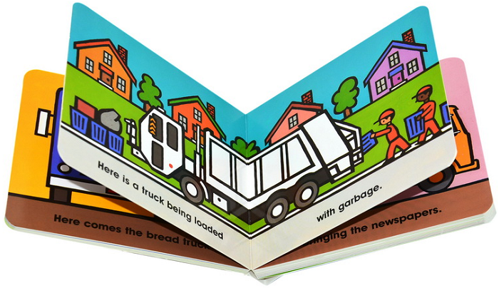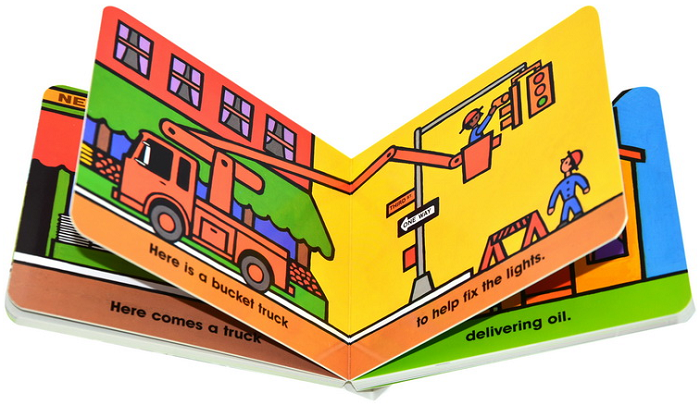 The tow trucks, cement trucks, and newspaper delivery truckspictured here all help people and will fascinate small children.This very simple picture book about transportation 'will delightthe youngest, and have enough meat for older preschoolers andbeginning readers.' -- K.