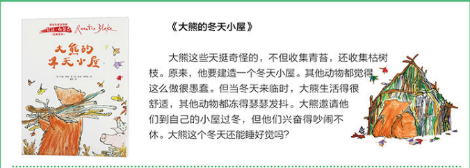 大熊这些天挺奇怪的,不但收集青苔,还收集枯树枝。原来,他要建造一个冬天小屋。其他动物都觉得这么做很愚蠢。但当冬天来临时,大熊生活得很舒适,其他动物都冻得瑟瑟发抖。大熊邀请他们到自己的小屋过冬,但他们兴奋得吵闹不休。大熊这个冬天还能睡好觉吗?
