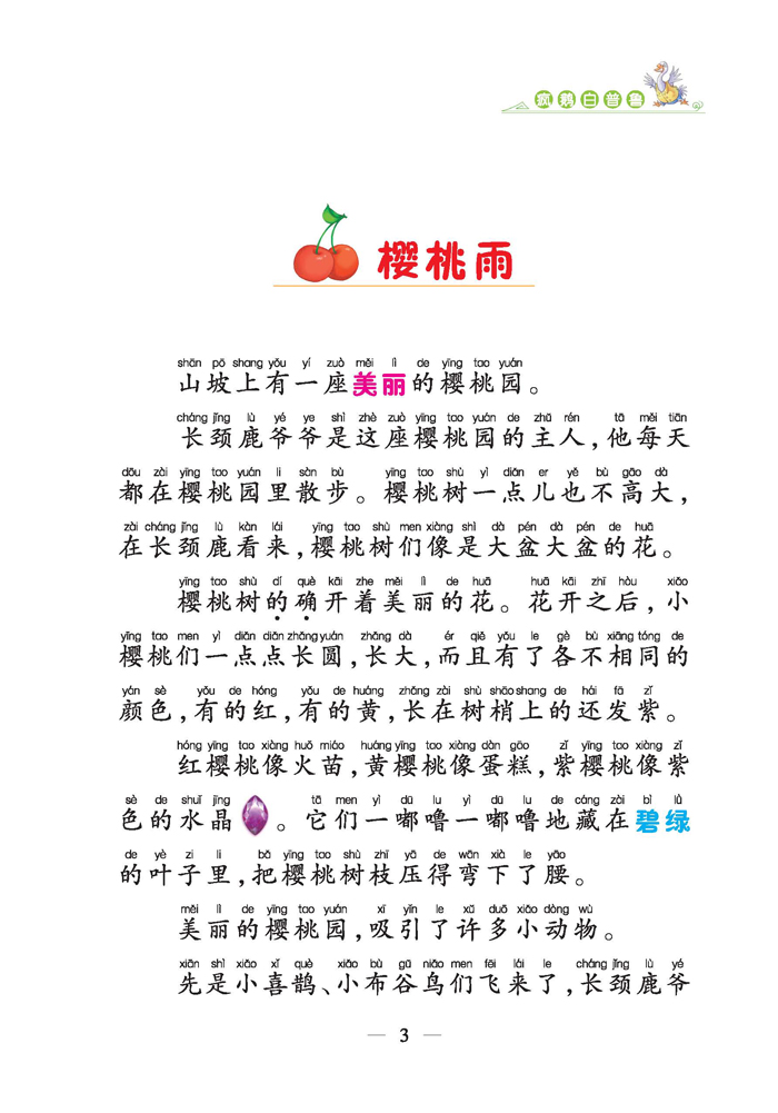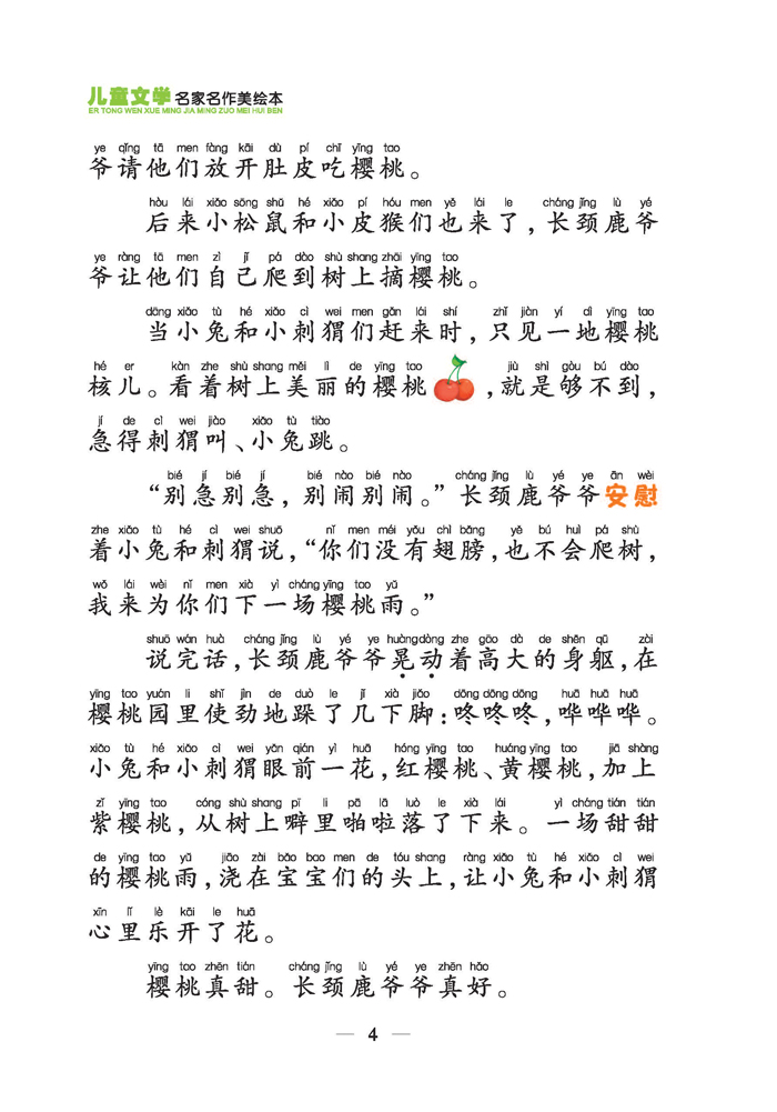 丛书选取了30位知名儿童文学作家原创的优秀儿童文学作品,有长篇的,也有短篇的,以寓言、童话故事为主,每位作家一本书,共30本。故事内容符合儿童心理特点。文中好的词语都变了颜色加以突出,加深读者对一些精彩词语的记忆,对于经常出现的多音字或变声字加点,巩固读者对拼音的掌握,并且随文附加一些引人思考的小问题,有利于启迪儿童智慧,培养儿童积极健康的思想品质。优秀的儿童故事配上精美的彩色插图,文图相映成趣,为孩子们以后的文学素养进行了一个良好的启蒙。