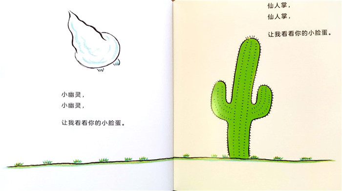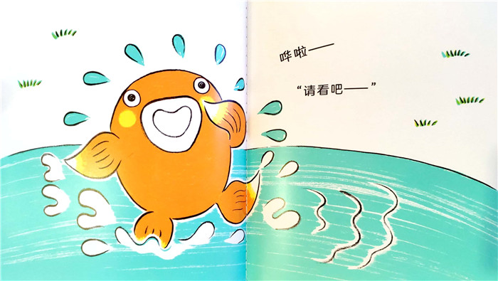 “亲亲小桃子”系列的每本书,都从勒口和扉页开始讲故事,正文结束以后,封底又像回声一样,将故事延伸下去,比如《小桃子捉迷藏》,正文的*后,轮到小船找,小飞机、小汽车和小桃子藏,从画面上的运动轨迹看,小飞机还会藏在云里,小汽车还会躲在树后,那小桃子会藏到哪里呢?翻到封底,哦,原来他把自己倒挂在一棵桃树上,藏在粉粉嫩嫩的大桃子中间,让人会心一笑。这独特的结构,是丰田一彦先生精心设计的,也反映了他的创作理念——勒口、书脊、封底,都能讲故事,有趣的细节等待善于发现的眼睛。