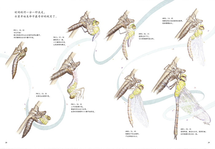 这是一本会让你感受到震撼的图画书,书里面,有作者精心为我们创造出的一个值得细细观察、细细品味的生命空间。蜻蜓的成长,合着这个环境中其他生物的认识与关怀,在作者微观细致的角度与充满人文情怀的书写方式下,格外令人感动。作者的用心与努力,以及严谨的科学态度,更是让人动容。