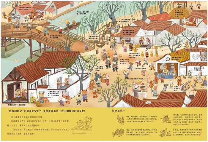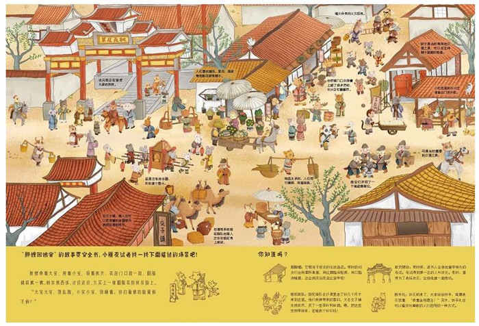 千年后的今天,我们依据宋本、明本《清明上河图》重新创作了“童话版”,将国宝级名画复活,与经典民间故事“胖嫂回娘家”“爷孙骑驴记”进行艺术结合,在画面中融入大量知识点。它既是一部历史通识百科绘本,又是一部游戏线索故事书。让孩子了解宋代历史的同时寻找画面中的故事线索,体验游戏的快乐,培养孩子的观察力和专注力。