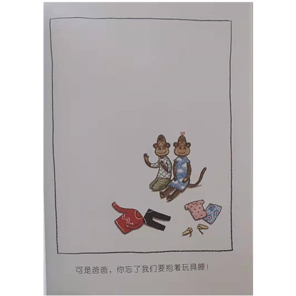 该睡觉了,爸爸说:“晚安,宝贝们!”孩子们却以“可是爸爸”为理由,一次又一次把爸爸叫回来。爸爸忘了好多事情,但他耐心地完成了所有睡前任务。