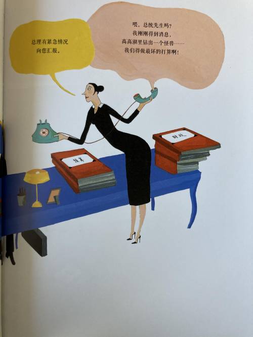 本书讲述了一位统治着全世界的总统,他遇上了一个大难题:封印在保存着世界机密湖里的大怪兽复活了!它横冲直撞,要毁了整个世界,来自各方的记者都在询问、军方在等待指令、百姓在等待救援……我们的统不堪重负,但他是世界总统,他又能向谁求助呢?他想到了自己的妈妈,但当他给妈妈打电话时,妈妈却只告诉他:赶紧回来吃饭!经过一番内心挣扎后,统在全世界的关注下狼狈地溜回了家。但刚到家,他和妈妈又在全世界的关注中即将被怪兽一口吞肚子里……