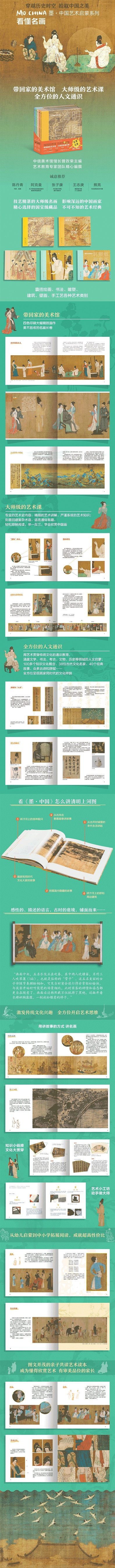 书中重点介绍作品创作背景、故事讲述、画面分析、画家特点、时代背景等内容,*后有相关知识小链接和动手创作两个部分。在美术史以外,还注重跟同时代其他艺术家和艺术形式的关联,如雕塑、壁画、书法、诗歌、辞赋等等,既是中国艺术启蒙,又是中国文化通识。