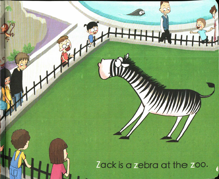 为了帮助孩子掌握26个英语字母的发音特点,并形成将字形与其发音正确对应的能力,特别针对每个字母设计了一本英文图画书。26个小故事涉及了时间、颜色、食物等多个孩子熟悉的生活主题。通过科学、合理的设计,在结构化的简单句式中不断复现含有同一字母的单词,帮助孩子掌握字母的字形及发音,最终实现“见词能读,听词能拼,举一反三”,大大提高单词识别的速度和准确性。
