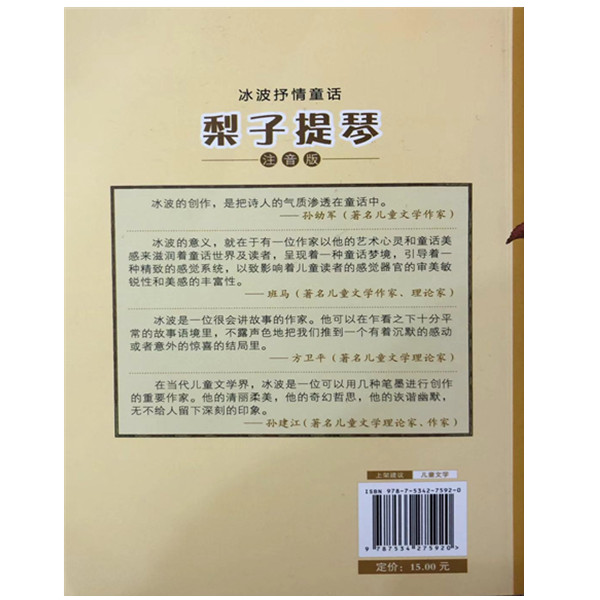 ????冰波是当代着名童话作家,他的抒情童话文笔细腻,深刻感人,深受小读者喜欢。此次选取冰波的童话代表作,结集成《冰波抒情童话》,*批发四册,做成适合低龄读者阅读的注音版,加以精美插图和细腻装帧。《冰波抒情童话:梨子提琴(注音版)》为其中一册,供青少年儿童阅读。