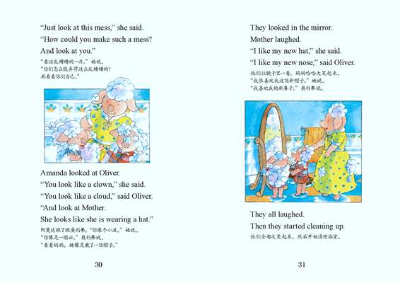 我们和孩子共读这12本书、54个成长故事,最受益的还是孩子。故事里小猪兄妹的生活点滴,虽然相距遥远,却仿若发生在自家,孩子们开始学会用小猪兄妹的口吻安慰妈妈,还会在大热天摆上一个柠檬汽水摊赚上一小笔零花钱……小猪哥奥利弗和猪小妹阿曼达真的棒极了,他们是孩子们成长的好榜样。