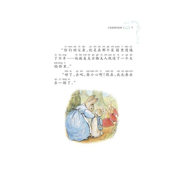 《小兔彼得和他的朋友们(注音版)1:小兔彼得的故事》 “彼得,”小本杰明悄声问道,“谁抢走了你的衣服?”小彼得回答:“麦克古格先生菜园里的稻草人。”内文选取大字号,加注拼音,排版生动活泼,更适合低幼读者阅读。