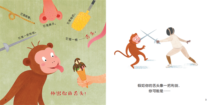 这是一本舌头届的“百科全书”,通过新奇的角度、贴近生活的比喻,来描述不同动物舌头的特性,极具记忆点。同时,书中还有朗朗上口的绕口令,丰富的知识延伸以及对人类舌头的介绍,让孩子们认识舌头这个感官,并通过舌头展开新的探索。