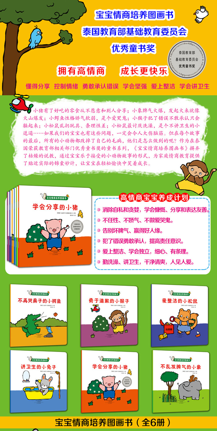 (泰国教育部基础教育委员会优秀童书奖获奖作品;以调皮可爱的小动物为主人公,贴近宝宝心理;懂得分享、控制情绪、勇敢承认错误、学会坚强、爱上整洁、 学会讲卫生;拥有高情商,成长更快乐)