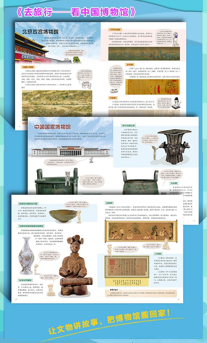 介绍了故宫博物院、国家博物馆、河南博物院、陕西历史博物馆、湖北博物馆、湖南博物馆、秦始皇兵马俑博物馆、台北故宫博物院等我国博物馆的镇馆之宝,图文并茂,手绘插图逼真,让读者足不出户就能看遍领略到我国古代文物的风采。