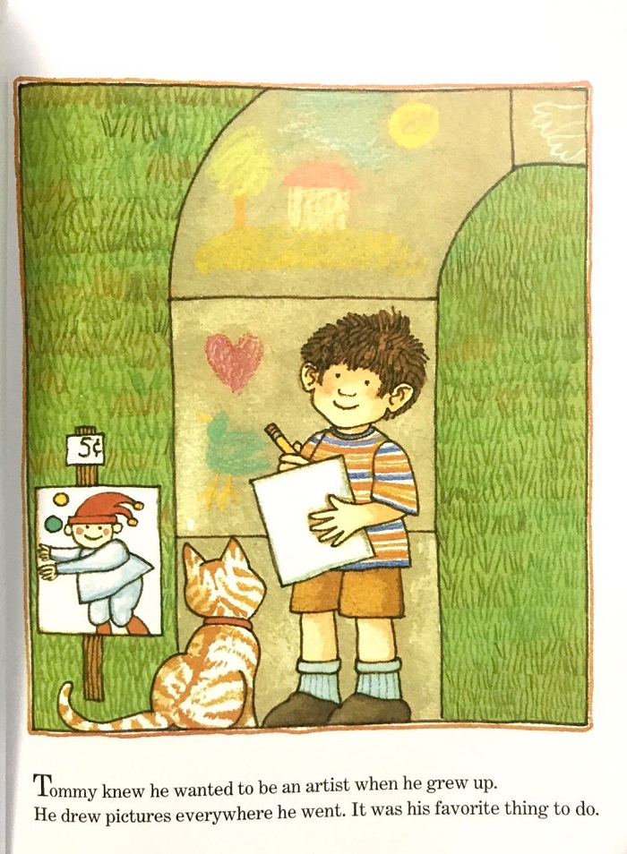 LittleTommywantstobeanartistwhenhegrowsup,soheisthrilledtolearnthathe'llhaveartlessonseachweekinfirstgrade.Butwhenartclassisn'twhatTommyexpected,heandtheteacherworkoutapromisethatallowshimtocontinueworkingtowardhisdream.--”DePaola'swell-honed,colordrenchedartwork...iswarmlyappealing;adeceptivelysimpleapproachunderscoredbypurecraft”.--Booklist,starredreview”TheperennialconflictbetweenIndividualandAuthority,orbetweenArtistandSociety,liesbeneaththisanecdote,andit'sgratifyingtoseethesmallnon-conformistacmodated.EveryonecanenjoydePaola'sgentleautobiographicalevocationofalovingfamilyandahappyobsession”.--SchoolLibraryJournal...