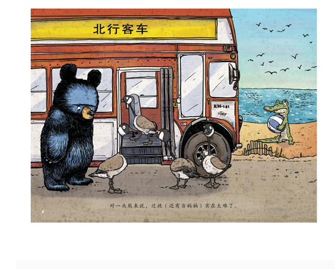 希金斯借由紧张冲突的情节来推动故事发展的巧妙安排,与诙谐反衬的语言和谐地融合在一起,他通过语言的反讽转折来制 造惊喜的娴熟功力在《鹅妈妈布鲁斯》中已露锋芒,本书继续沿 袭了这一手法,但读来依然“笑”果不减。“布鲁斯是一头熊,跟四只小鹅住在一起……心不甘情不愿地。”“就在一切糟得不能再糟的时候……情况更糟了。”这种俏皮的表达,总能博得读者的会心一笑。类似的例子书中俯拾即是,于是读者一路读来,一路欢笑。这种出人意料的语言表达手法带给读者连续、渐进、回旋的 幽默体验。