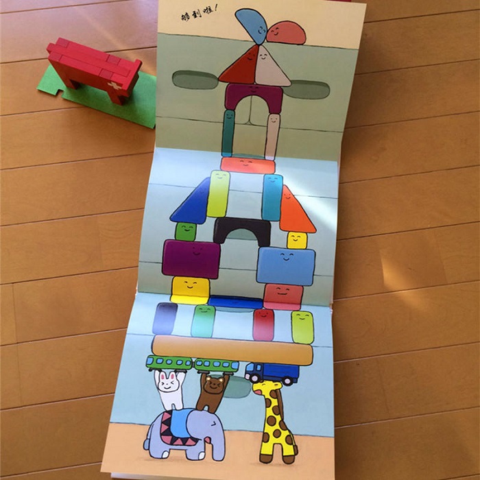 真是元气满满的好故事!讲过好多遍之后,小孩会用自己的积木搭高高,模仿积木小伙伴们营救积木小妹的场景。这本书,我们玩得很开心。