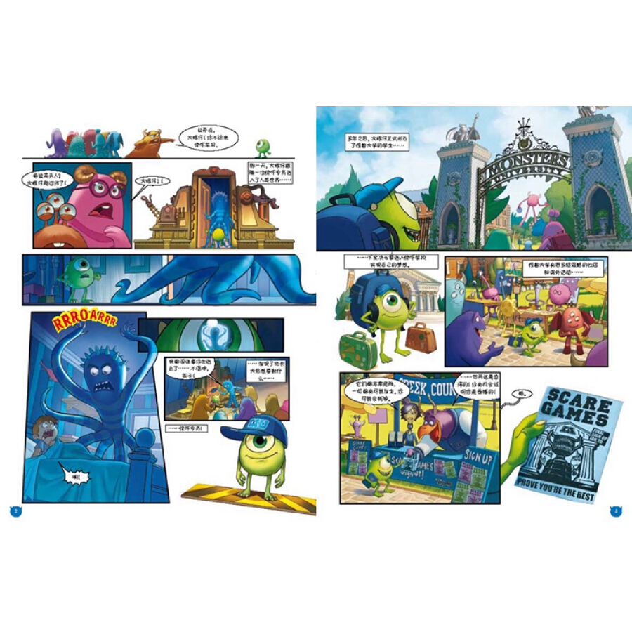 本书为皮克斯动画电影《怪兽电力公司》续作《怪兽大学》的漫画版。怪兽电力公司中毛怪苏利文与他的搭档大眼仔麦克也曾有过轻狂少年的时期,这对拍档见到后彼此是在当年刚进入怪兽大学的时候。刚入学时的大眼仔还是个戴着牙套的书呆子,而“吓二代”毛怪则是叱咤校园的风云人物,两人在碰巧成为同寝室的室友后,就因为互看不顺眼成为一对欢喜冤家,而随着日后的相处摩合,却渐渐变成了紧密不分的好友。