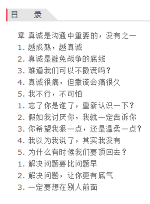 这是一本杨天真的“沟通秘籍”,用*真诚的方式讲解*有力的沟通之道。真诚、直接、解决问题、共情、共识、自我沟通,6大核心板块,层层递进,破解沟通背后的底层逻辑! 作者从自身经验出发,聚焦从业以来生活、工作各个场景中的实际案例,真实还原家庭、职场、人际等多层次的沟通场景,并有针对性地提出自己的沟通方法和解决方案。内容体例完整,丰富多元,包括*化放大自己的优势让自己被看到和被需要、听懂别人的诉求厘清别人的期待、艰难情况下的沟通说服、职场向上沟通、在谈判中掌控全局等等。案例 方法,用故事打动,用道理说服。旨在帮助每一个希望重新认识自己,实现自我突破的你!