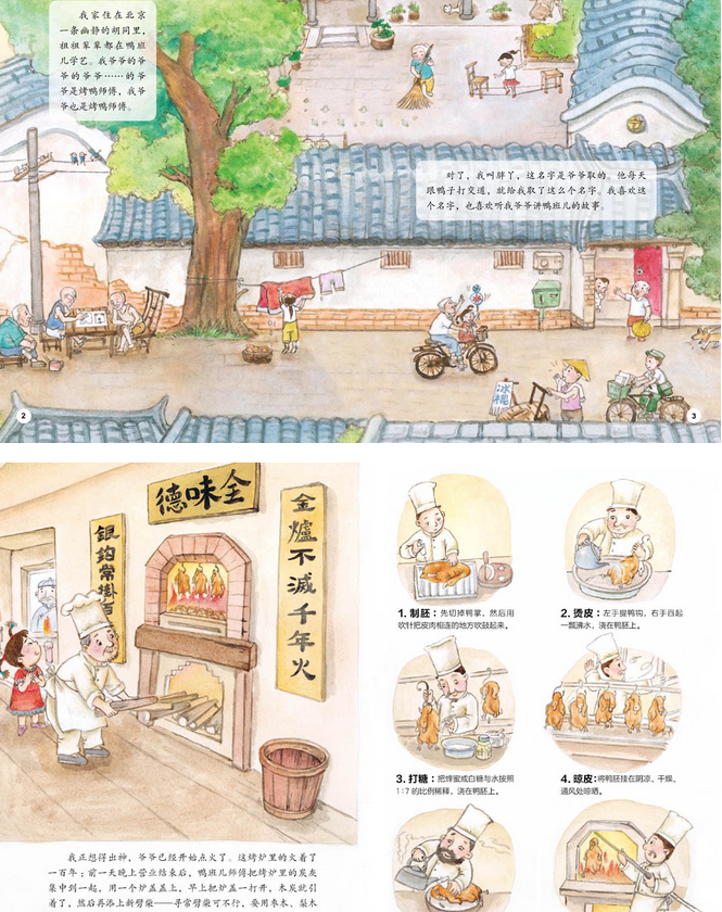 北京烤鸭以独特的烤制工艺和蕴含其中的传统餐饮文化精髓而享誉海外。《“美食中国”图画书·北京烤鸭》借助北京胡同里鸭班儿老师傅的口述,讲述烤鸭历史起源与发展,并以小孙女胖丫的视角,带小朋友走进鸭班儿后厨,见证一只烤鸭从制胚、烫皮、打糖、晾皮、灌水、入炉、盯炉到新鲜出炉的详细步骤,庖丁解鸭的过程叫人眼花缭乱,吃烤鸭的过程也大有学问,五花八门的鸭子美食更是令人大饱眼福,让孩子们在了解传统美食的同时,感受弥足珍贵的匠人精神。 ◎饱含中国味道的“美食小百科”,以“美食故事 延展知识 健康小贴士 美食小档案”的内容架构,介绍中华传统美食的方方面面,体例丰富,有料有趣,让孩子们发现日常小食背后的大学问; ◎帮助孩子了解美食与历史变迁、与节气时令、与地理环境的关系,让孩子们亲近美食、亲近大自然的食育绘本; ◎引领孩子了解美食背后的传说典故,从典故中感知“医圣”张仲景的...