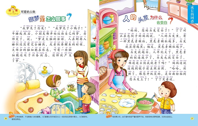 安武林(中国寓言文学研究会副会长兼秘书长)——?我觉得这套书,在叙述的语言上,是活泼的、充满童心的,而且偶尔来一句孩子气的表达,使阅读变得轻松了许多,这应当是借鉴了文学表达的特点。这倒是这套《幼儿版十万个为什么》的新创意,是对读者的体贴和关怀。该书还有一些小的链接,是对主旨的延伸、说明、补充、拓展,这一点倒是很符合当下做百科书的特点:时尚、流行。温馨、体贴、柔软、趣味丰富,是这一套书的主要特点。愿它能伴随着每一个幼儿成长,能给孩子们带去快乐、知识和温暖。读者评论一枚猫——儿子五周岁,每天会问我很多个为什么,所以选择了这套幼儿小百科,他读中班,认识了不少字,看到书后很感兴趣,每天缠着我读一页故事,第二天讲给小朋友听,一个月下来确实长了不少的知识量,书的内容足以覆盖小朋友的日常好奇心。色彩人生306——这套书无论印刷还是包装都是不错的,内容通俗易懂,很容易被孩子接受,而且能比较容易的复述下来。孩子3岁多点,很喜欢。每天晚上睡前必定是讲这套书的。