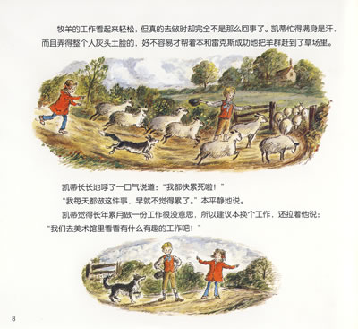 在美术馆里,凯蒂和牧羊男孩本的一系列职业体验历程让她明白:无论自己将来傲什么职业,所要面对的困难都是很多的,只有最适合自己的工作才是最好的工作。那究竟哪份工作才最适合我们的小凯蒂呢?