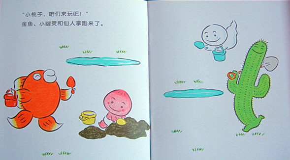 父母应当和婴儿一起读什么样的图画书?画面简洁、情节简单但非常具有趣味性是最基本的选书标准。简洁的画面、简单而合理的情节才容易让年幼的孩子理解和体会,有趣的画面和语言才能吸引孩子的注意,激发她们与成人一起阅读的兴趣。《亲亲小桃子》就是一本适合亲子阅读的图画书。
