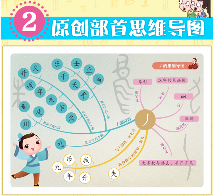 通过这六册内容精彩的图书,可以轻松地认识201个部首,并学到 与其相关的知识:在形象的部首思维导图和有趣的部首漫画故事中,掌 握学习汉字部首的方法:在寓教于乐的欢乐气氛中,还能学习古诗词、 猜字谜、唱儿歌、玩游戏……