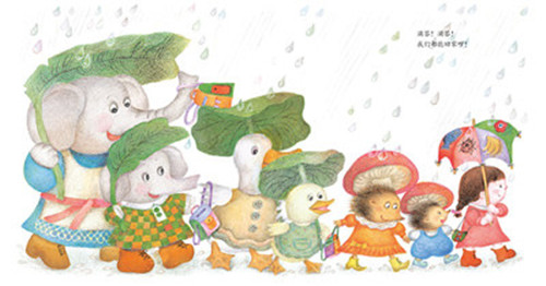 “中国原创图画书系列何艳荣”选取了何艳荣近年来比较有代表性的作品,除了一篇自写自画的《下雨》,还有和其他著名儿童作家合作的图画书。这里边既有幼儿故事,也有儿歌,共八篇: