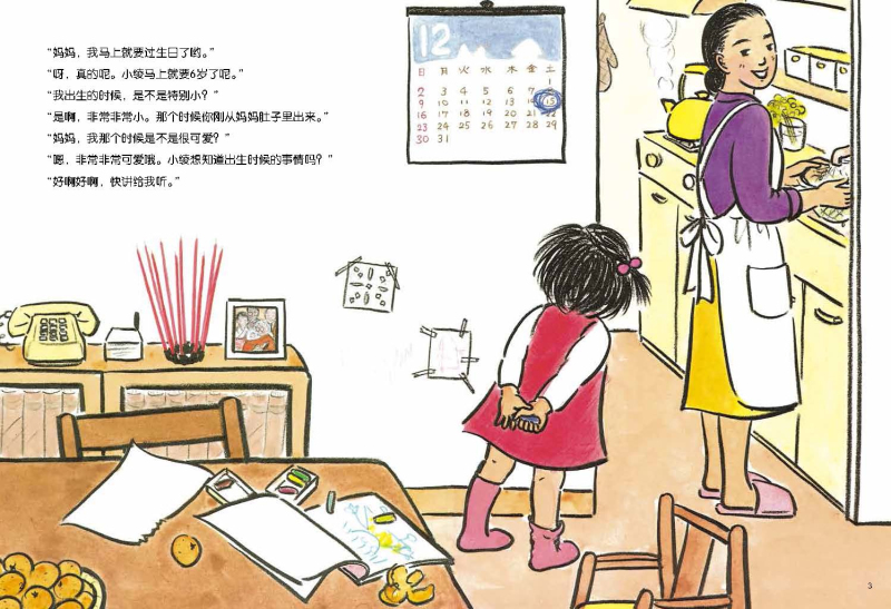 马上就是小绫6岁的生日了。妈妈给小绫讲述了小绫出生那一天的事情。