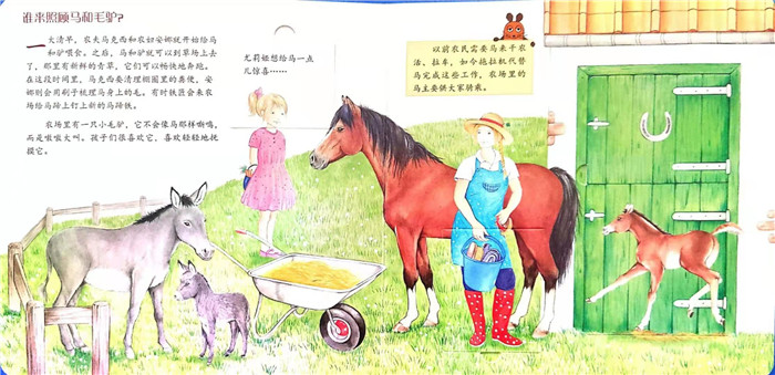 本系列书稿是儿童百科知识翻翻书,适合三岁以上孩子阅读,包含7个分册,分别为《森林》《森林里的动物》《农场》《农场里的动物》《马和马驹》《恐龙》《动物园》。书中通过小老鼠的形象,让孩子边玩游戏边学习基础知识,用生动活泼的语言清楚明白地解答孩子们的疑问,再配以有趣细腻的插图,特别设计的翻翻看窗口和触摸元素充分激发孩子的阅读兴趣。