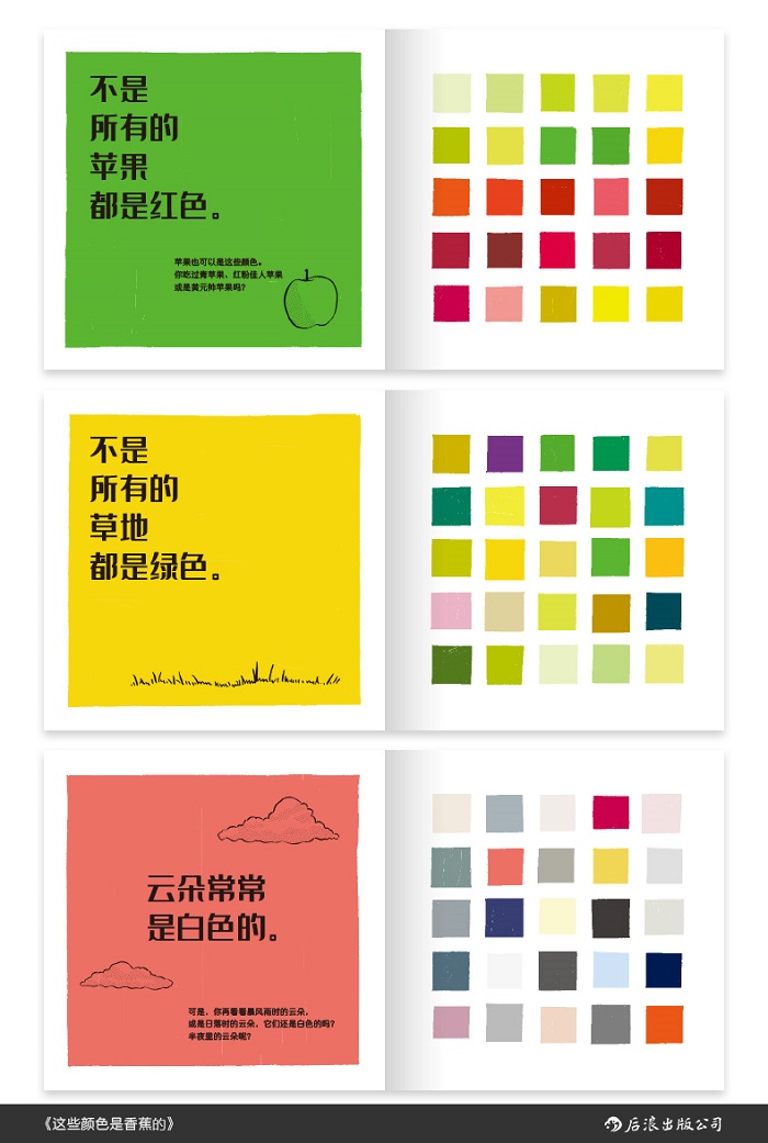 本书分别介绍了苹果、草地、云朵、玫瑰、火、冰、土地等11种事物的不同颜色,每种事物都展示出了25种颜色。鼓励孩子去认知、辨识颜色,并打开思维,意识到同一事物颜色的多变性,以及语言的局限性,并为长大后探索万物变化的奥秘埋下好奇的种子。