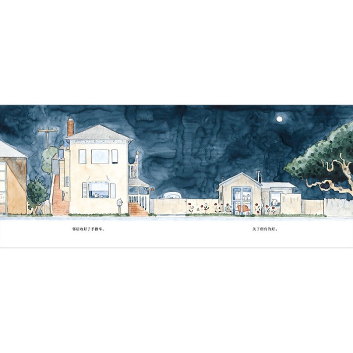 这是一本以诗般的文字描写父女二人睡前散步时的所见所闻的图画书。父女沿着家门口的一条路散步,看见邻居刚修剪好草坪,橡树叶子在风里哗啦啦响,调皮的松鼠跳来跳去,邻居厨房里飘出食物的香气,海湾边停着一艘艘大船……唯美的画面,诗般的文字,为孩子睡前创造一个美好的夜晚,帮助孩子安然入睡。