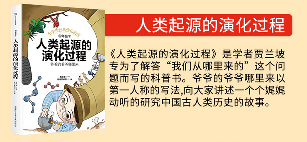 本套书分为4册,精选了优秀作家米·伊林、李四光、高士其、贾兰坡的优秀科普作品,分别为《十万个为什么》《我们的地球》《灰尘的旅行》《人类起源的演化过程》,整体定价,整体销售。本套书紧扣语文教材快乐读书吧阅读要求,适合四年级孩子阅读,搭配精美插图,图文并茂,内容积极、乐观、向上,充满童趣童乐,提高学生的阅读理解能力。《人类起源的演化过程》向广大青少年介绍“人类起源学”的基础知识,旨在培养和提高青少年对这门学科的兴趣,从小立志在科学研究领域一展身手。《人类起源的演化过程》为“少儿科普名人名著书系”之一,以第一人称的写法,向大家讲述一个个娓娓动听的研究中国古人类历史的故事。