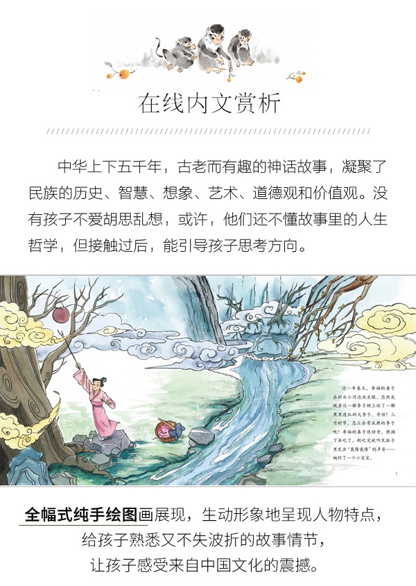 中国插画大师从历代祖先流传下来的民族美术大宝库中,汲取国粹水墨画、板画的美术表现方法,把地道的中国美术手绘至故事里,完成原汁原味、活灵活现的全幅式插图。