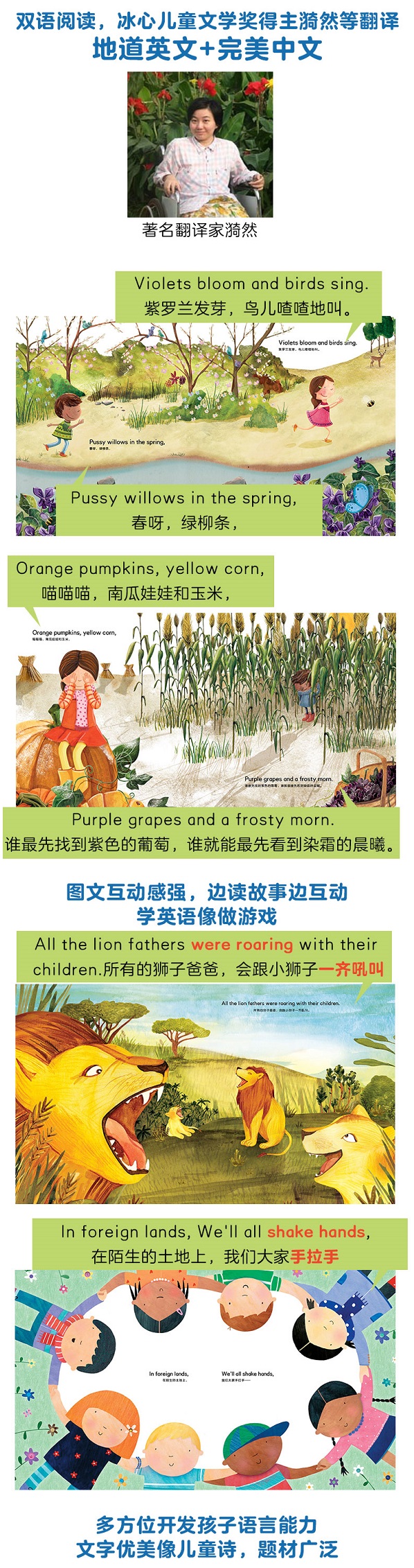 玛格丽特·怀兹·布朗女士一生为孩子们创作了数百篇故事和诗歌,其中最为人称道的经典之作是《月亮晚安》和《逃家小兔》。她与插画家雷欧纳德·威斯伽德合作的绘本《小岛》获得了1947年凯迪克金奖。“玛格丽特·怀兹·布朗珍藏绘本集”精选玛格丽特·怀兹·布朗女士未发表的珍藏之作,由英国插画家精心配图。《小飞机,飞呀飞》讲述:我开着小飞机,飞呀飞,飞过了云层,穿过了小雨。飞到高空,去看看小鸟,去看看地上的人们……。